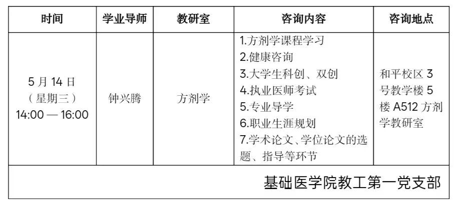 为切实增强全体党员的群众观念和服务意识,争做四有好老师,甘肃中医药大学基础医学院党委开设“学业诊室”,为学生做实事,帮助学生解决学业和生活中遇到的困难及问题。特聘请以下党员教师为学生“学业导师”,个性指导学生,提高学业水平。